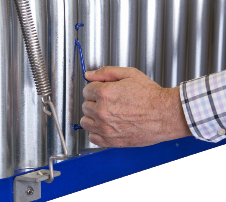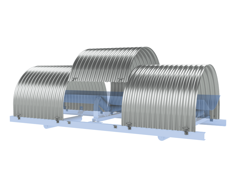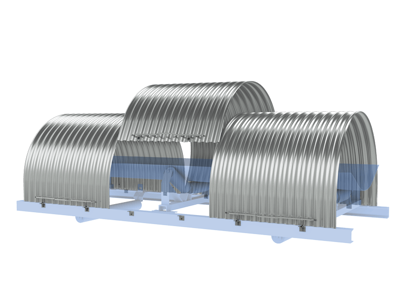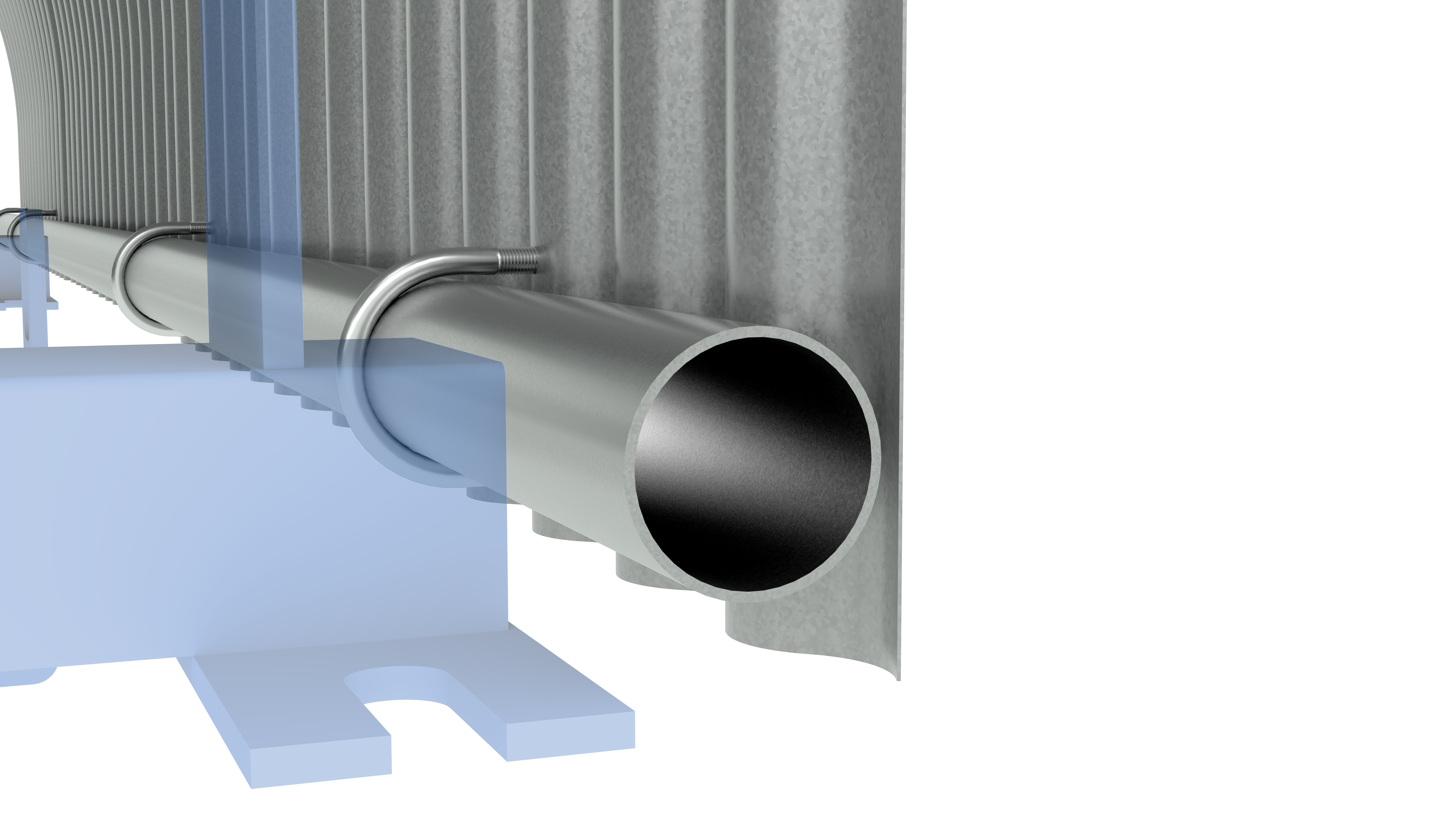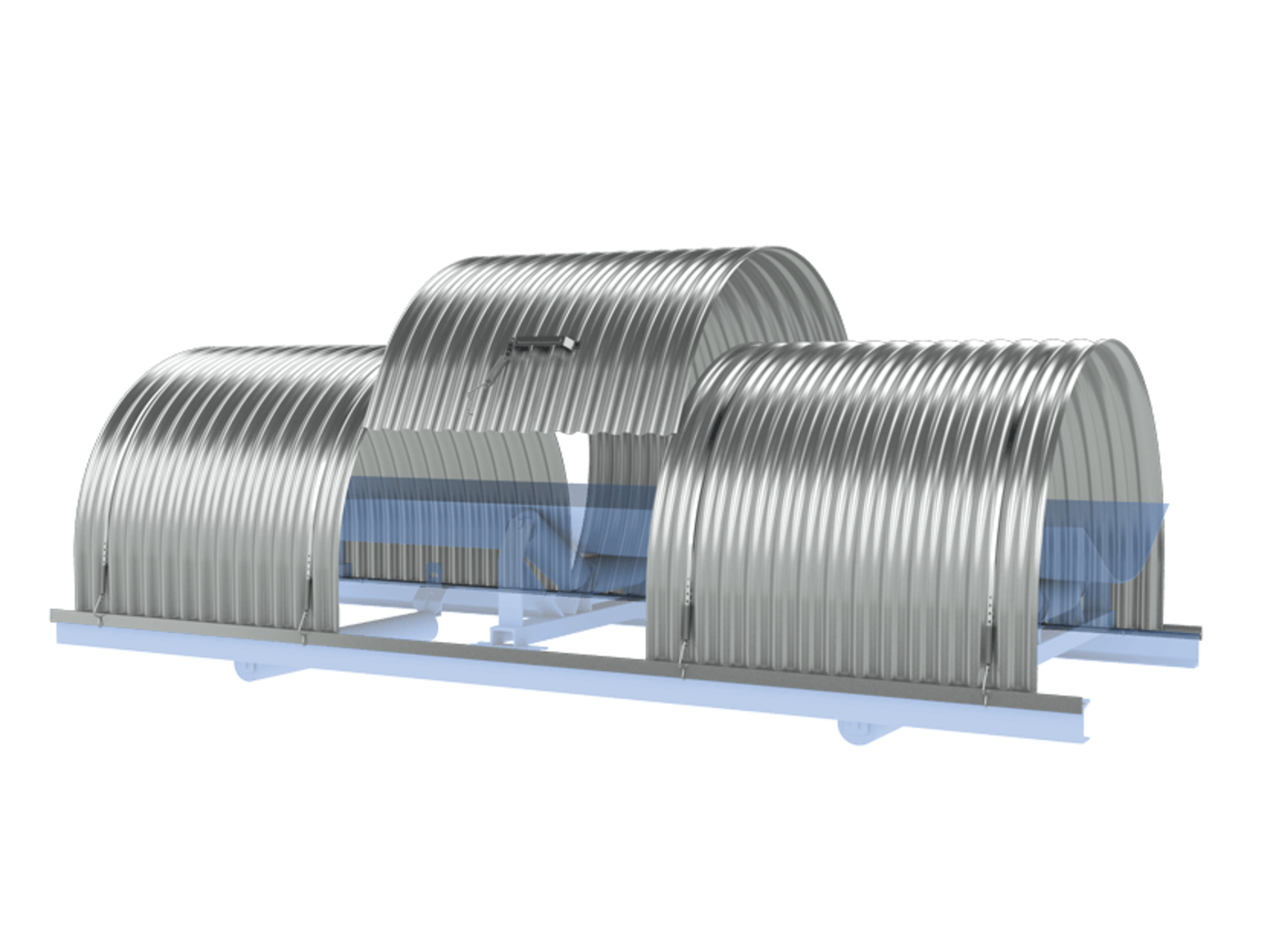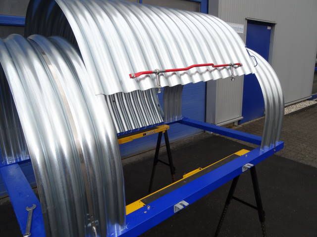 Unsere Öffnungsmöglichkeit TSC (Tube Swivel Cover) ist ausgelegt für bauseitige Rundrohr-Unterkonstruktionen. Die Hauben sind einseitig mit je zwei Rohrbügeln versehen, die scharnierartig wirken. Auf der Laufstegseite können die Hauben entweder mit einem kurzen, integrierten Spannband (ähnlich dem LOOP-System) befestigt werden oder in der einfacheren Variante mit einer Hakenschraube.